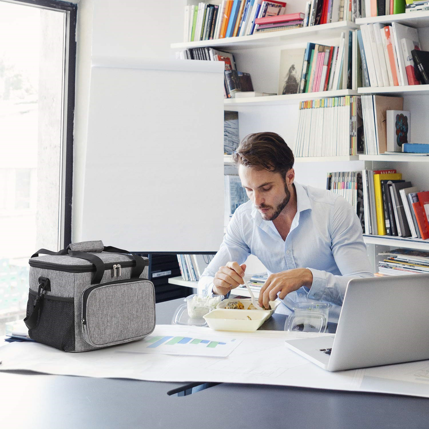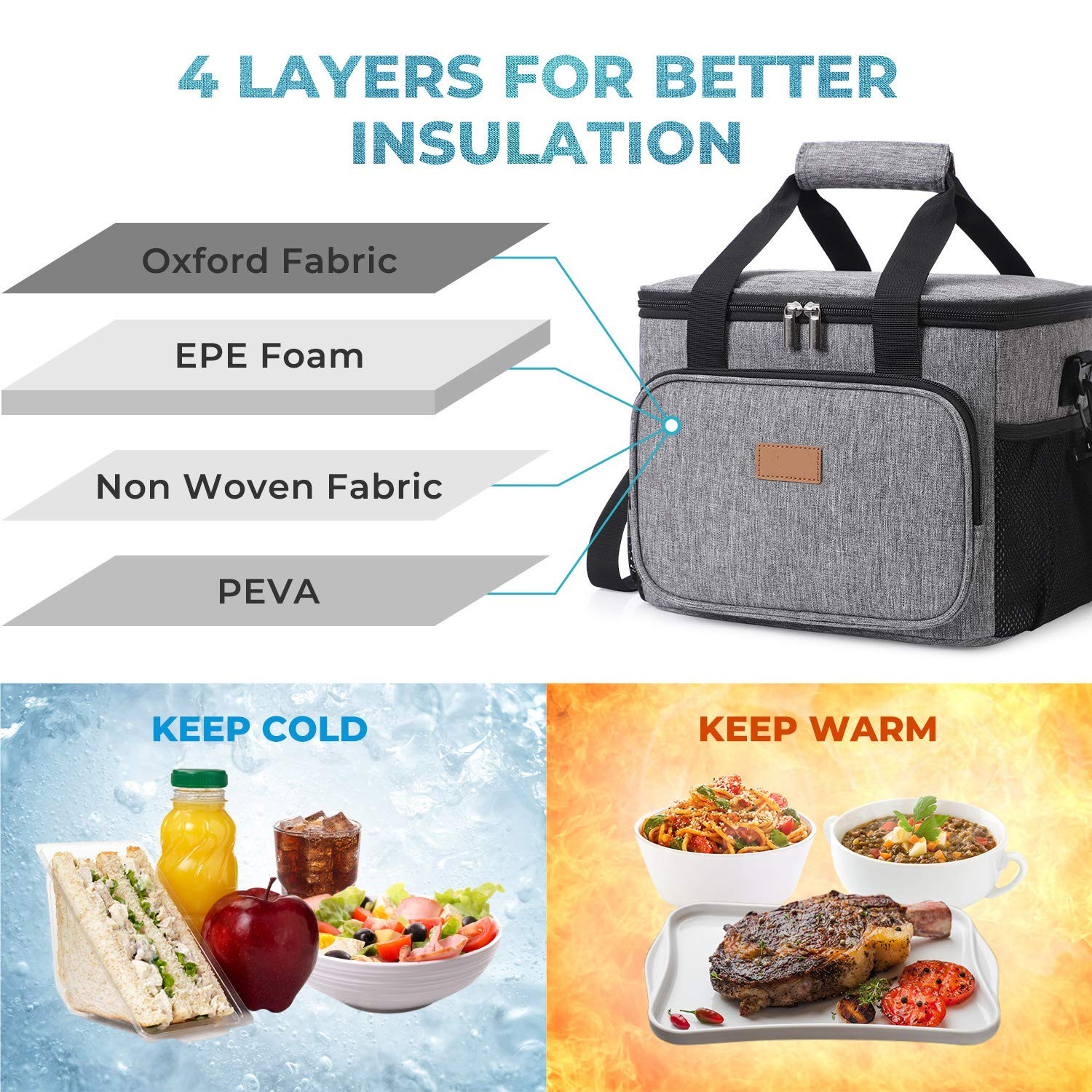 | 24-Can 15L Large Lunch Bag Insulated Lunch Box Soft Cooler Cooling Tote for Adult Men Women Grey | ||