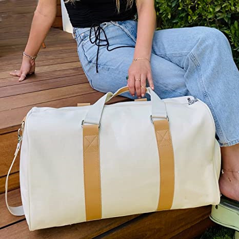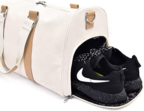 | Canvas Weekender Duffle Bag Women Luxury Overnight Carry On Luggage Travel Beach Gym Tote Bag with Shoe Compartment | ||