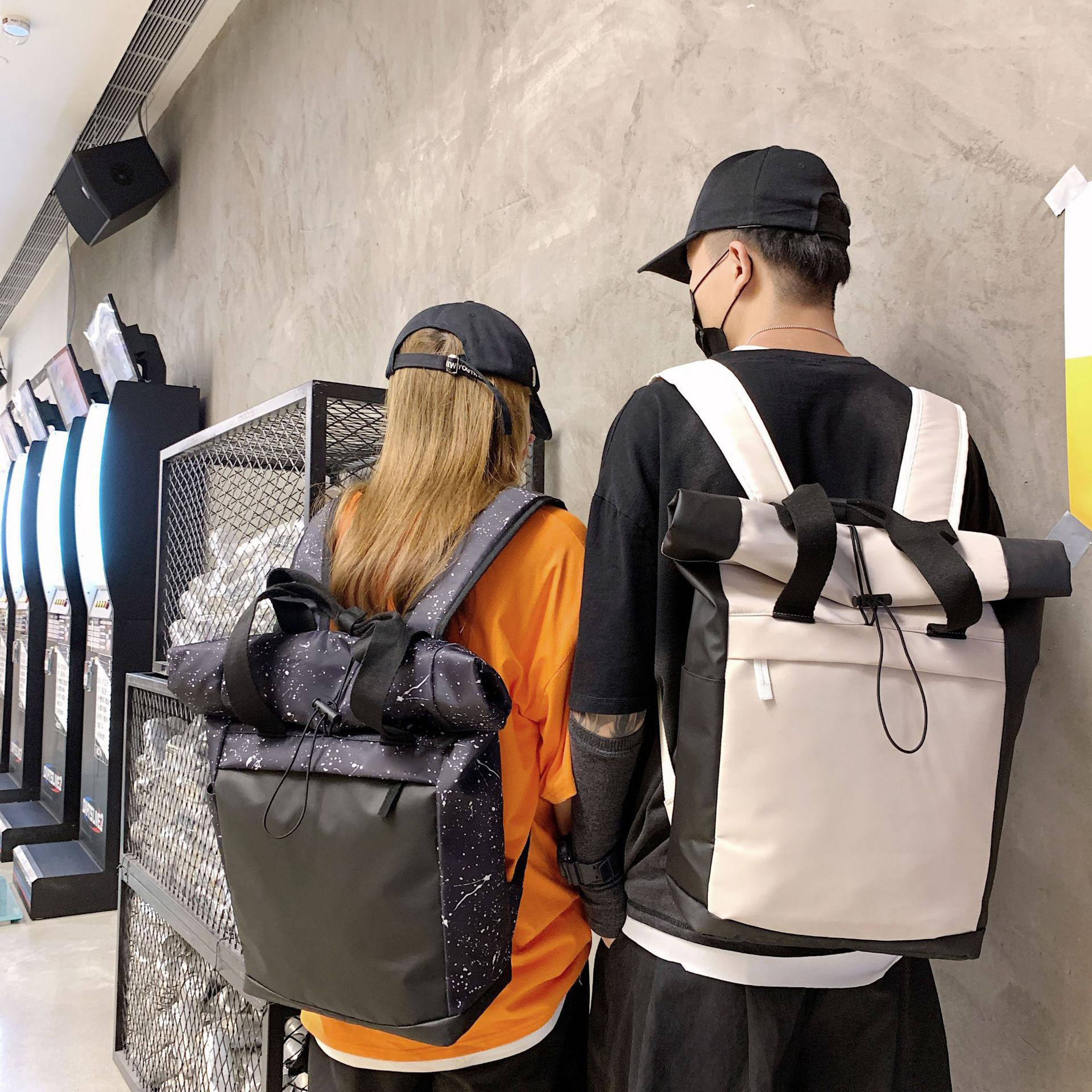 Custom Color Logo Roll Up Daypack Rucksack Travel School Boys Man Cool Design Roll Top Backpack Waterproof