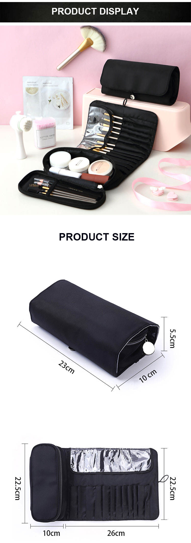 FAQ/About Custom Professional Black Cosmetic Makeup Brush Organizer Bag For You