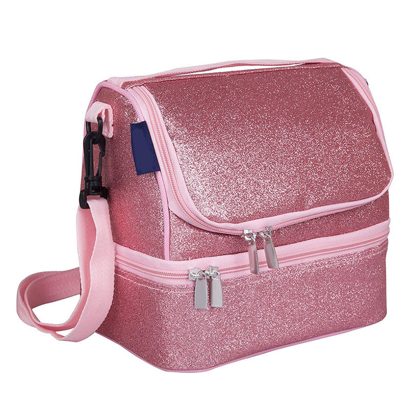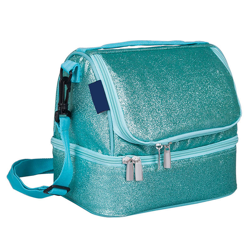 Double Deck Shiny Glitter PU Leather Children Insulated Lunch Bag Thermal Kids School Cooler Bag | |