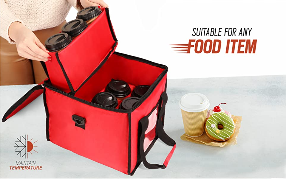 Large capacity insulated coffee bag food delivery drink cooler grocery box motorcycle tote food carrier | |