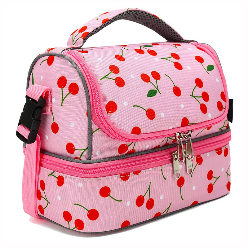 Lovely Custom Cherry Pink Kids Insulation Cooler Bag Double Compartment Thermal Food Lunch Bag | |