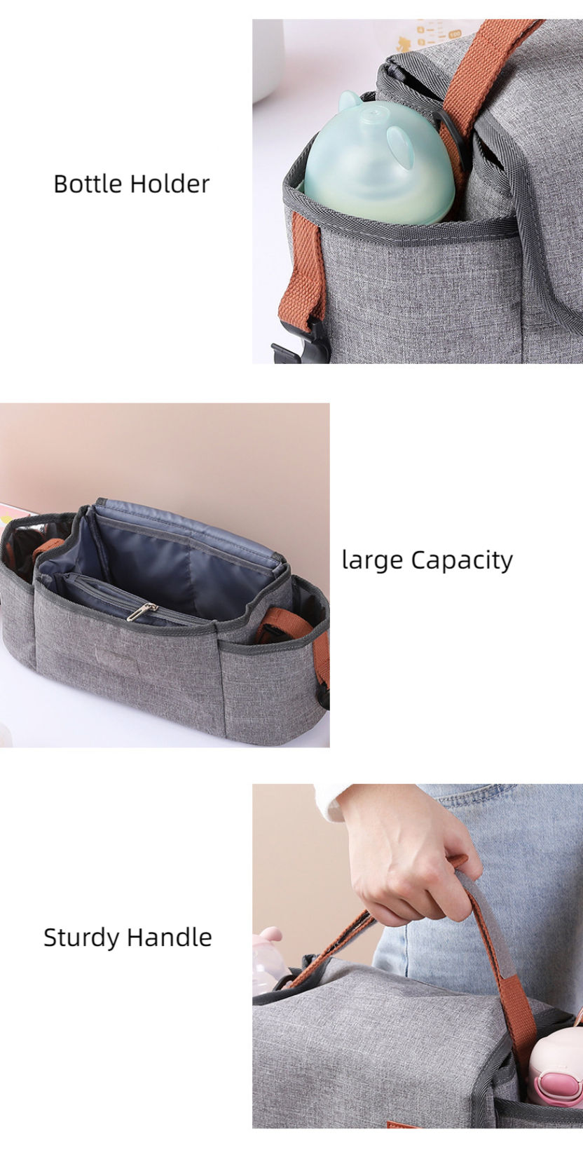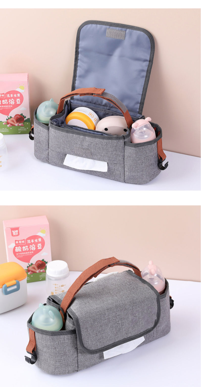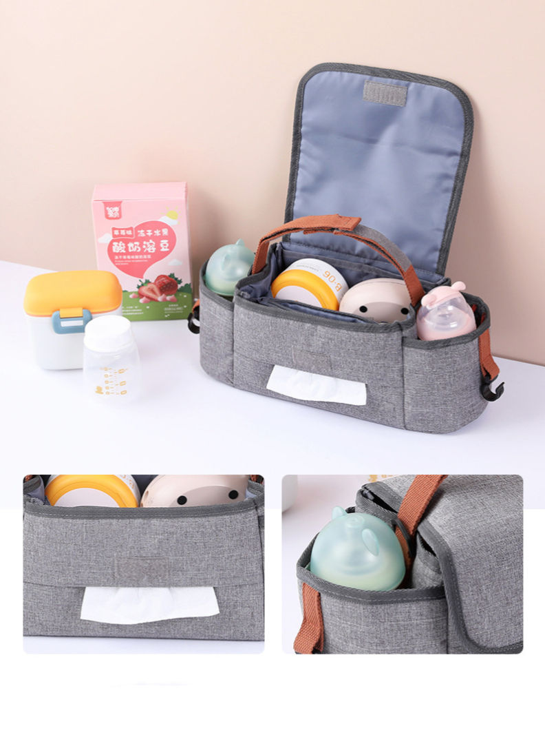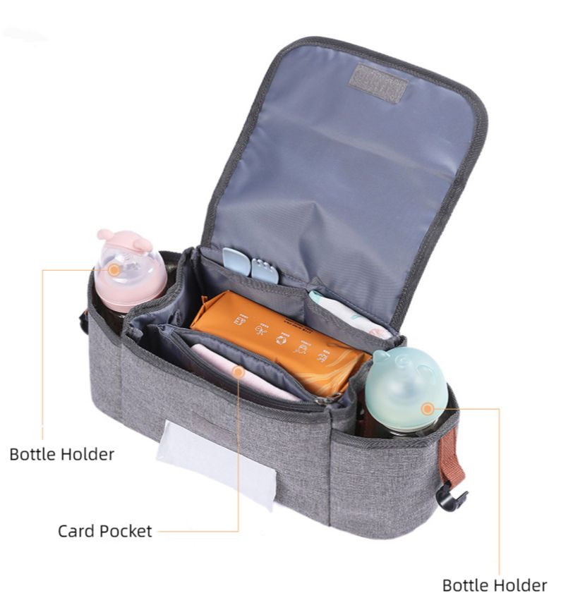 Name | Heavy Duty Stroller Organizer Bag Universal Stroller Accessories Bag with 2 Cup Holders Multiple Pouches for Bottle Diaper | |||