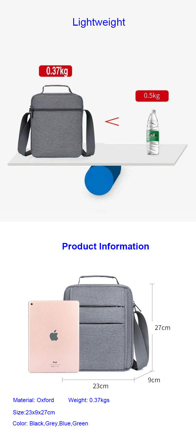 | * Material | Oxford + Polyester Lining | |||