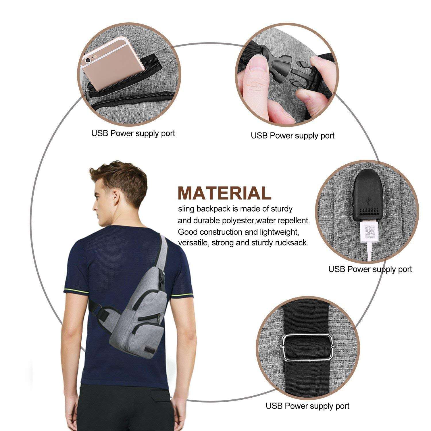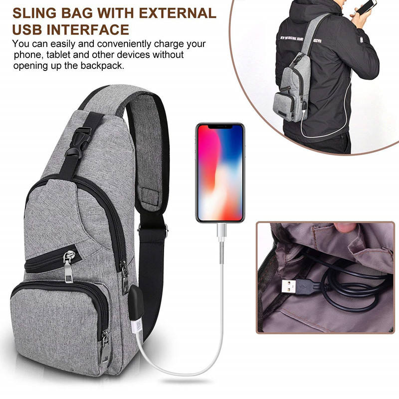 Outdoor Sports Chest Bag Sling Backpack Lightweight Shoulder Bag With Charging Port For Men Women | |