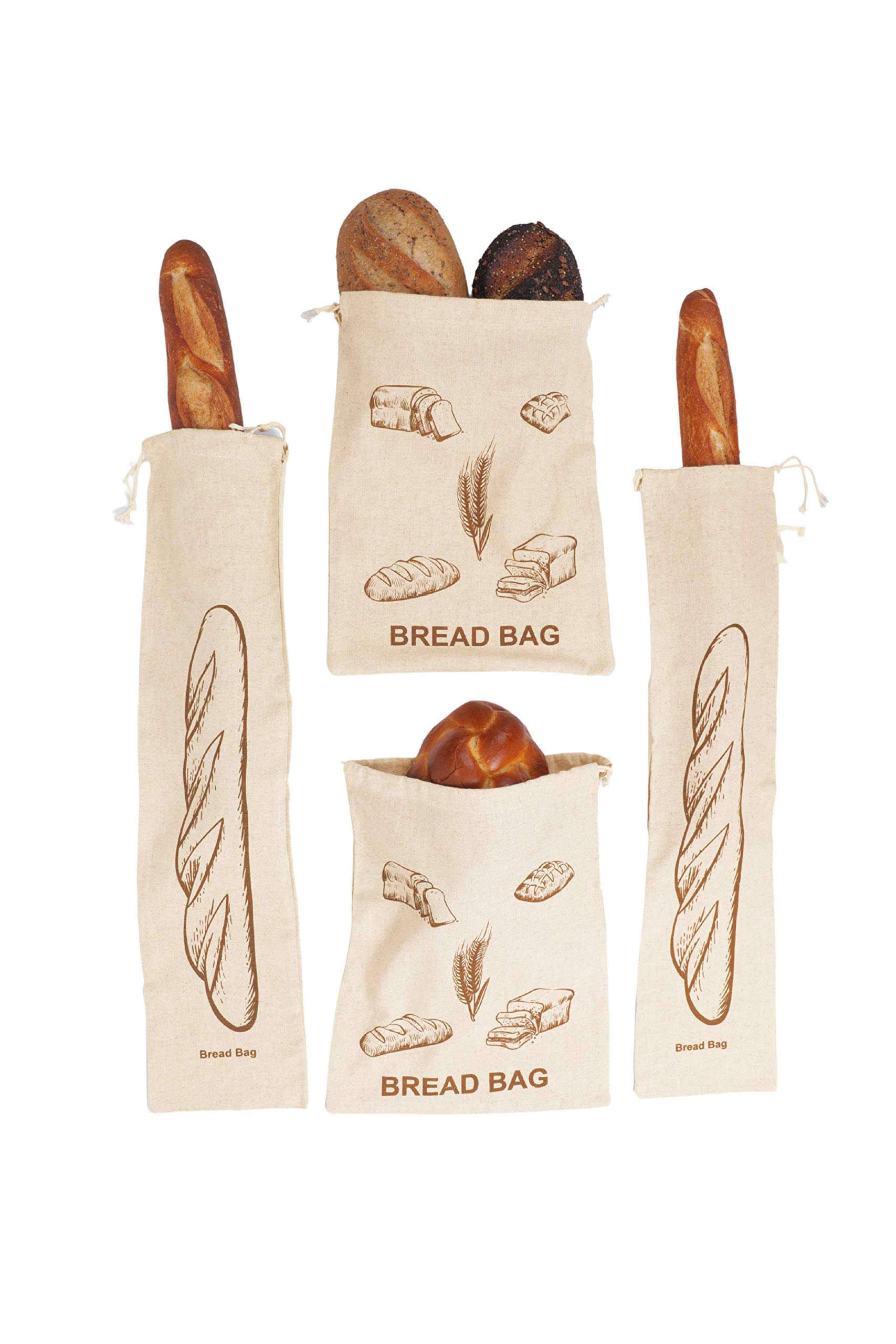 Reusable Bread Bags Homemade 100% Organic Linen Extra Large Reusable Bread Storage Bags Drawstring for Sourdough